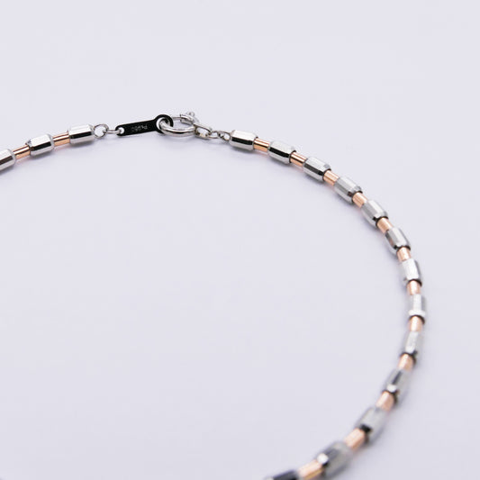 Pt950/K18PG コンビ 12面カット シリンダー ハンドメイド ブレスレット 17cm
