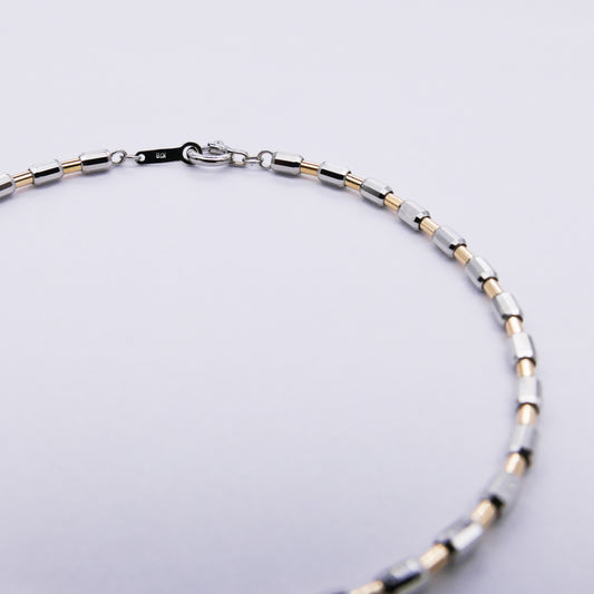 Pt950/K18YG コンビ 12面カット シリンダー ハンドメイド ブレスレット 17cm